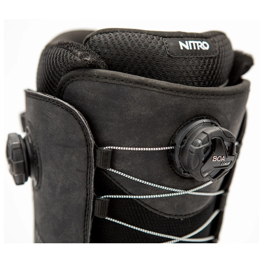 La Nitro Chase Dual BOA est une boots de snowboard avec un flex assez rigide, de nombreux éléments de confort et un système de serrage rapide Double BOA. Ces deux molettes permettent de régler indépendamment le haut et le bas de la boots, pour plus de précision et de confort tout en gardant un serrage rapide et intuitif.