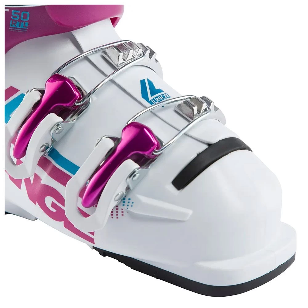 La Lange Starlet 50 est une chaussure de ski enfant, offrant un niveau de performance adaptée aux gabarits légers, dans une construction qui n’a rien à envier aux modèles pour les adultes. On retrouve ainsi un serrage 4 crochets en aluminium accompagné d’un strap velcro, une coque mono injectée en polyolefine et un chausson Junior.