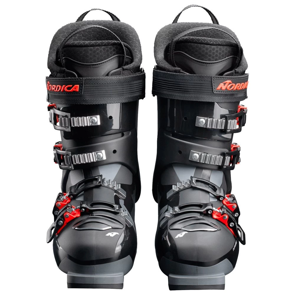 Chez le fabricant Nordica, toutes les chaussures de la gamme Sportmachine disposent d’un volume chaussant de 102 mm adapté aux pieds larges. La Sportmachine 3 100 (Gw) Black Grey Red que nous vous présentons ici fait partie des chaussures les plus souples de la série, arrivant en seconde place derrière la Sportmachine 3 90 sur ce terrain. Son flex de 100 permet une conduite plus dynamique que sa petite sœur, tout en conservant une excellente fluidité et une grande accessibilité. Peu énergivore, c’est le genre de chaussure idéale pour enchaîner les descentes sans perdre en enthousiasme.