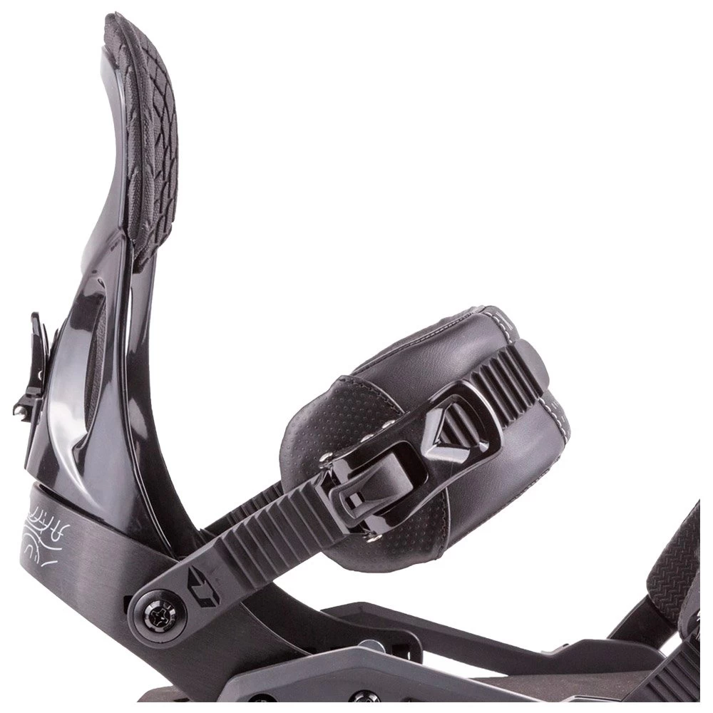 Avec son spoiler qui vient envelopper votre mollet, la fixation de snowboard Drake King permet d’avoir du contrôle tout en gardant de la souplesse en torsion pour plus de confort dans vos appuis. Son footbed en EVA vient apporter une touche supplémentaire de confort en absorbant chocs et vibrations pour rider toute la journée.