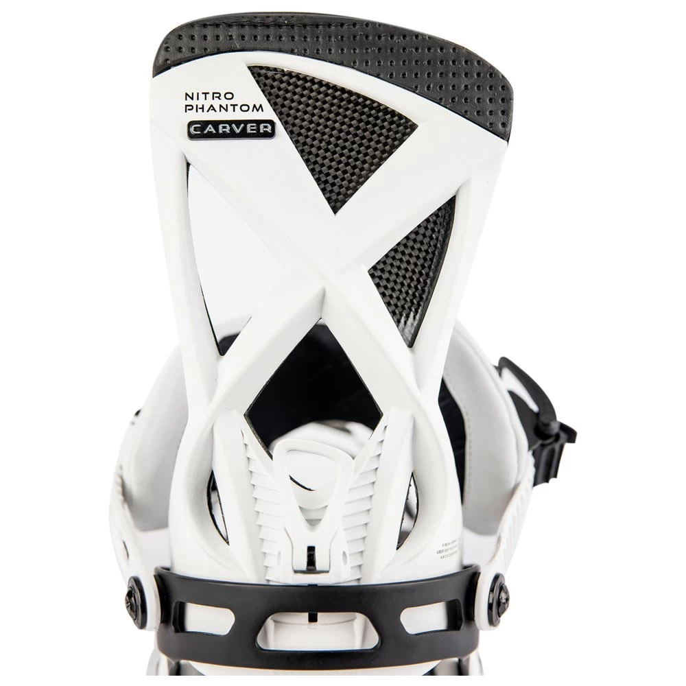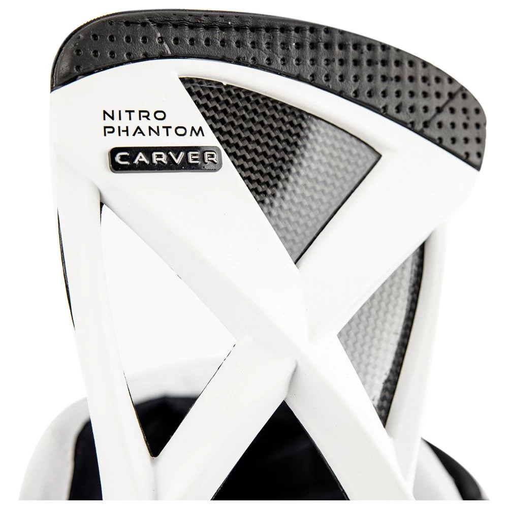 Version modifiée de la Phantom, la fixation de snowboard Nitro Phantom Carver part d’un modèle freestyle pour devenir une fixation beaucoup plus précise dans les courbes. Le spoiler est renforcé par du carbone et des modifications ont été apportées au strap cou-de-pied pour gagner en contrôle sur les appuis frontside. On perd donc en jouabilité pour gagner en performance, sans perdre en confort et en amorti qui sont haut de gamme. Spécifiquement développé pour les amateurs de carving, cette fixation fait partie de la section Carver Crue de chez Nitro.