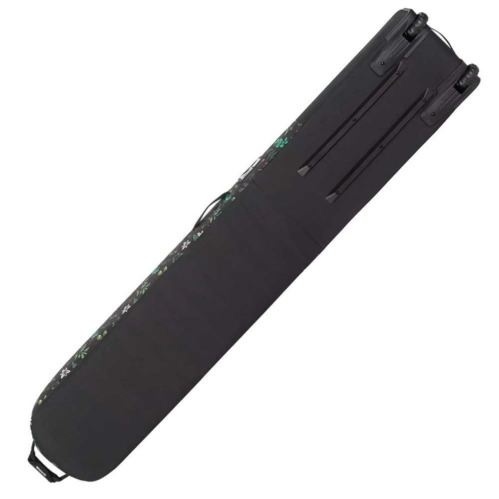 Voilà la Rolls Royce de la housse de snowboard ! La Dakine Low Roller Snowboard Bag est un modèle pensé pour le voyage, avec une construction semi-rigide équipée de roulettes, de barres de structure et d’une poignée rétractable. Elle est dotée d’un grand compartiment zippé pouvant contenir une planche de snow avec ses fixations ou 2 boards sans fixations. Il peut aussi contenir une paire de boots et des vêtements ou accessoires supplémentaires. Une poche externe zippée est également à votre disposition pour vos outils, votre paire de gants ou autres effets personnels. Avec son rembourrage intégral, cette housse Dakine protège efficacement votre matériel lors du stockage ou du transport.