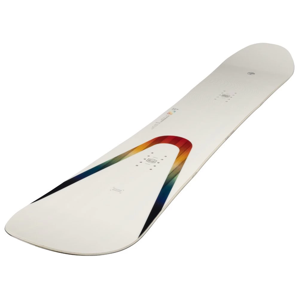 L’Arbor Poparazzi Rocker est un snowboard twin directionnel, c’est à dire symétrique entre l’avant et l’arrière pour pouvoir rider switch mais avec une position des pieds légèrement reculée qui permet de faciliter les virages. Elle est dotée d’un cambre inversé qui apporte beaucoup de tolérance dans les fautes de carre, évitant aux débutantes de faire des erreurs techniques dans les descentes et facilitant les tricks pour les rideuses plus confirmées qui cherchent à progresser en freestyle. Le cambre inversé apporte également une meilleure glisse en hors-piste et dans la poudreuse. Enfin, le noyau bois renforcé de fibres de verre offre un flex accessible, facile à rider tout en gardant de la réactivité. Une board qui permettra à des snowboardeuses intermédiaires à confirmées de progresser en freestyle et de rider dans toute la station avec beaucoup de jouabilité.