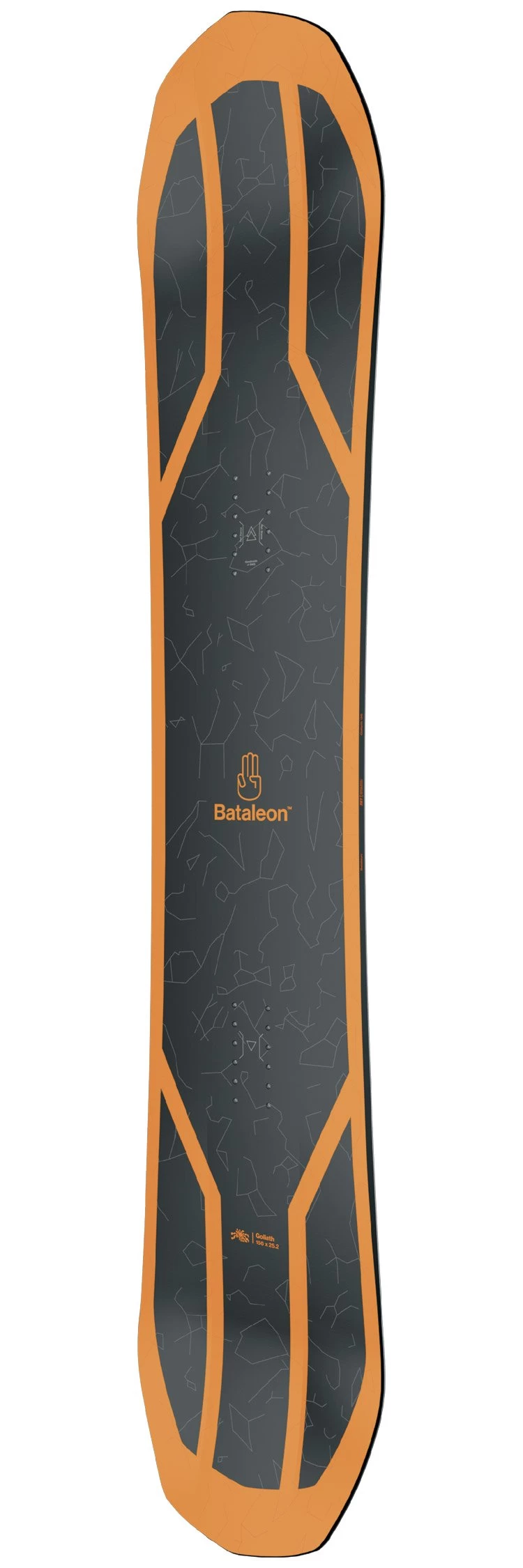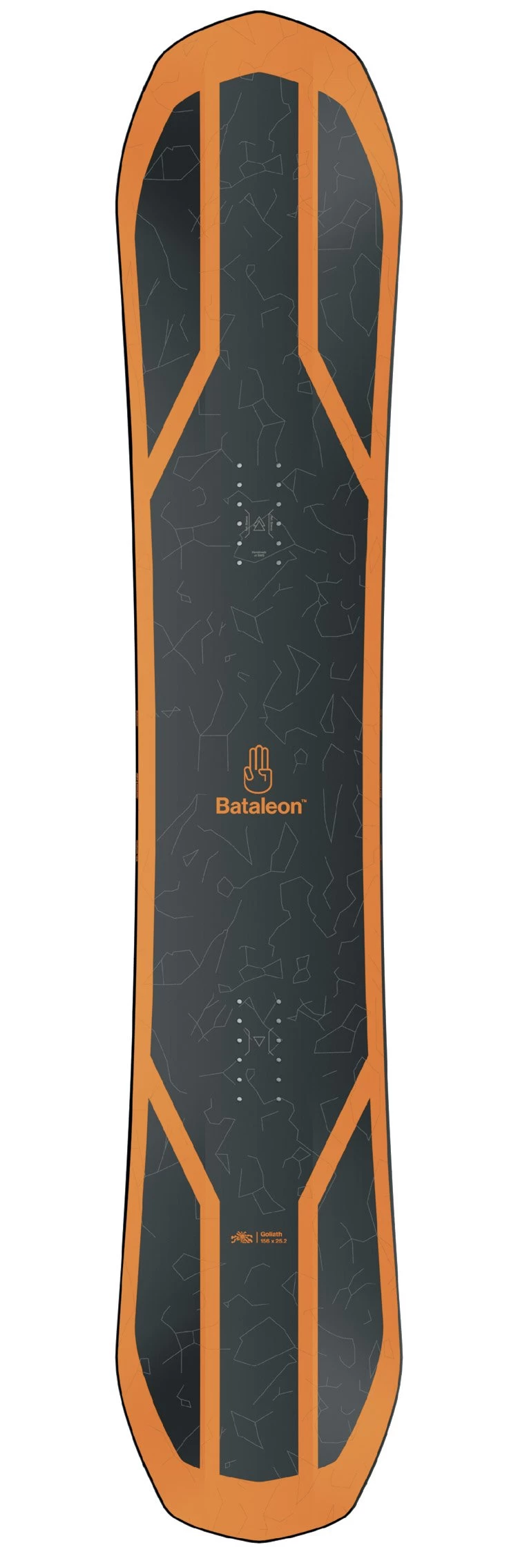 La Bataleon Goliath mise sur un noyau bois peuplier et paulownia associé à un tressage de fibres de verre triaxiale et des renforts en carbone. Ces éléments apportent respectivement légèreté et tonicité, rigidité en torsion et pour finir rebond et stabilité. Le résultat sur la neige est un flex pas trop rigide donc une board agréable et accessible, d’autant plus que les inserts sont positionnés un peu en arrière pour faciliter les entrées de courbes et que les spatules concaves 3BT améliorent la tolérance.