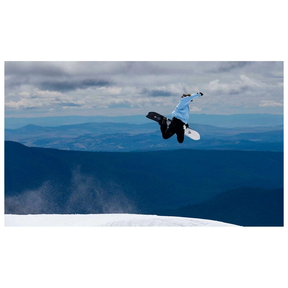 Le flex est dynamique et facile à prendre en main, offrant une conduite accessible permettant d’enchaîner les virages avec une grande aisance quel que soit le terrain. C’est d’autant plus le cas avec le rocker bien prononcé en spatule avant, la forme directionnelle et la position des pieds reculée, qui permettent des entrées de courbe ultra fluides. On profite également d’une déjauge naturelle qui permet de profiter des belles conditions de neige, tandis que la section de cambre classique et les carres Traction Tech 3.0 apportent une bonne accroche sur neige dure. On peut donc se lancer dans une descente en carving sur piste, comme on peut s’amuser à enchaîner les slashs dans la peuf et slalomer entre les sapins.