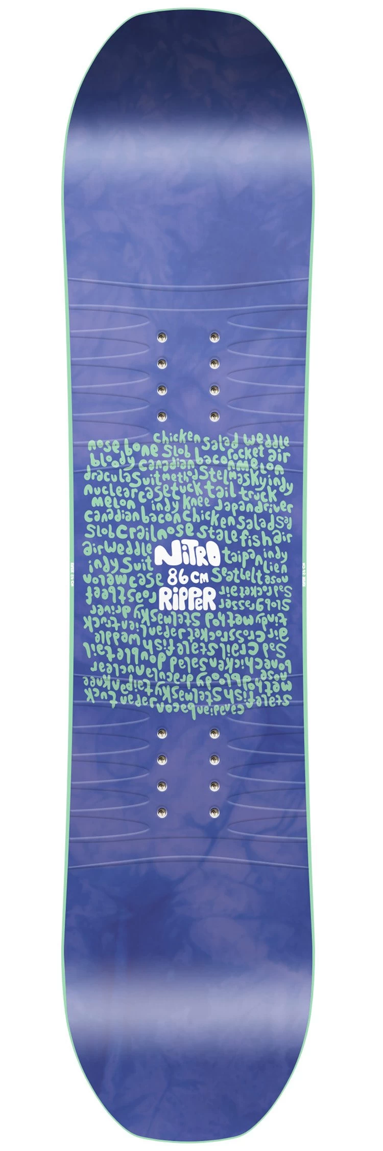 La planche de snowboard pour enfant Nitro Ripper Kids reprend la construction et le shape habituels du snowboard moderne. Elle est twin-tip, c’est à dire symétrique entre nose et tail, la position des pieds est bien centrée. Elle est souple, avec son noyau bois renforcé de fibre de verre. Facile à prendre en main, elle sera parfaite pour un enfant en plein apprentissage du snowboard.