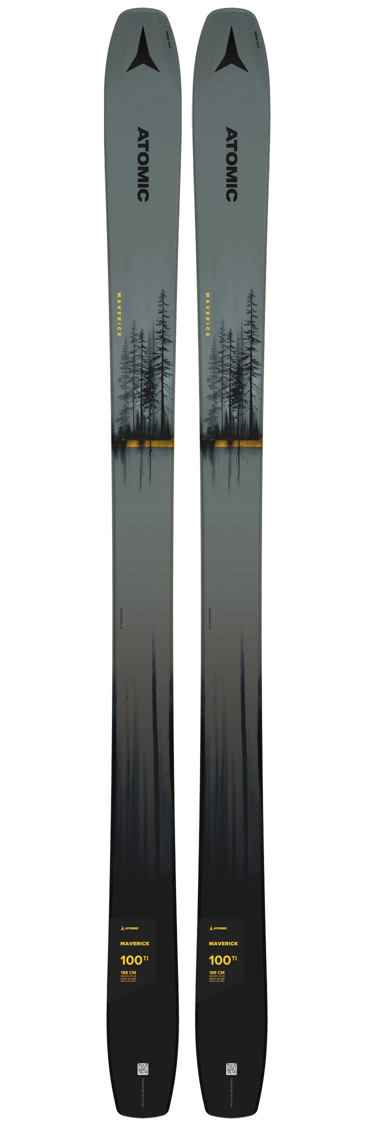Si tous les skis de la gamme Maverick d’Atomic sont fait pour le all mountain, le modèle Maverick 100 Ti est celui qui est le plus orienté hors-piste. Cela est dû au fait qu’il est le plus large de la gamme, avec son patin de 100 mm qui vous apportera une sensation de légèreté en poudreuse. S’il dispose d’un cambre classique sous les fixations pour garder une certaine accroche, son double rocker 20-10 est résolument tourné vers la maniabilité en neige profonde. D’ailleurs, il dispose aussi de la technologie HRZN Tech qui élargit la spatule pour une meilleure déjauge et plus de tolérance vis à vis du positionnement de votre corps dans la peuf. Comme tous les skis de la gamme Maverick, il profite de la structure OMatic qui combine un noyau en peuplier avec des couches de fibres de verre. Mais à la différence de certains skis de la gamme, le Maverick 100 Ti est équipé d’un insert en titanal qui vient renforcer sa rigidité pour vous procurer plus de réactivité. Le 100 Ti est véritablement la jeep tout-terrain de la gamme de skis Maverick.