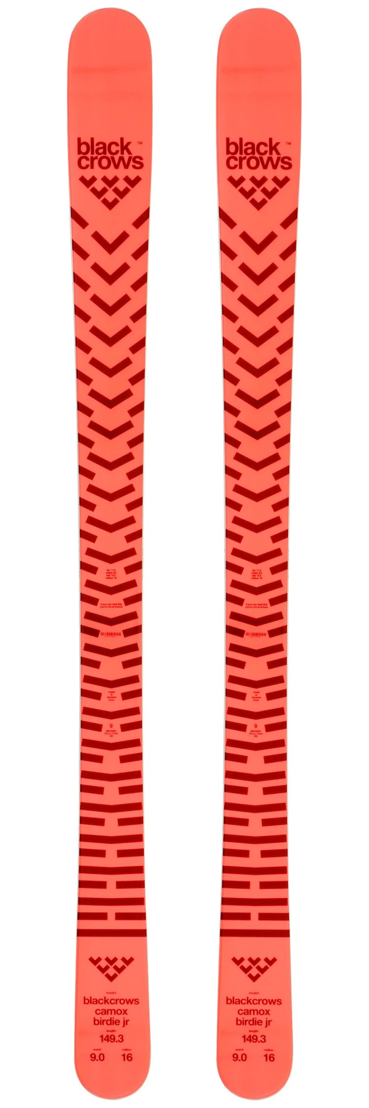 Le Black Crows Camox Birdie Jr est un ski très polyvalent avec un shape bispatulé. Sa largeur de patin est idéale pour le all-mountain/freeride, tout comme son profil cambre classique + double rocker qui lui donne de la maniabilité et de l’efficacité sur tout type de neige. Il permet aussi bien une conduite coupée sur piste qu’un run dans la fraîche en bord de piste/hors-piste ou une session dans le park. La construction peuplier/fibres de verre offre un flex pêchu sans être trop rigide, permettant d’avoir de la puissance sous le pied, de la stabilité à haute vitesse, tout en gardant un ski agréable à rider quand on a le niveau nécessaire. Très vivant, le Camox Birdie Jr fera le bonheur d’une freeskieuse de 14 – 18 ans avec un niveau confirmé.