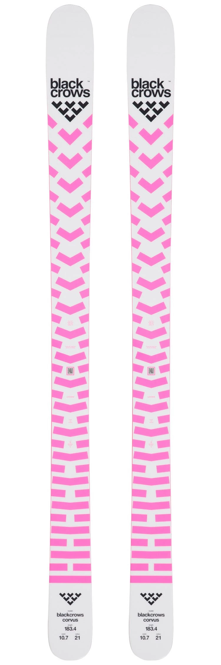 Le Black Crows Corvus est un ski de freeride avec une largeur au patin de 107 mm, un cambre inversé et un noyau peuplier/fibres de verre. Le cambre inversé permet d’avoir une mise en pivot rapide et ainsi d’offrir une maniabilité exceptionnelle tout en augmentant une flottaison déjà très bonne avec la largeur du ski. Le cambre inversé comporte tout de même une section de cambre plat bien marquée dans le centre du ski et elle est associée à une double plaque de titanal, ce qui permet d’obtenir une accroche solide sur neige dure. Le flex est donc bien ferme sous le pied et il devient plus progressif aux spatules. Enfin, le long rayon de courbe permet d’assurer la stabilité dans une conduite en longue courbe à haute vitesse, indispensable pour pouvoir charger dans les descentes. Pour résumer, le Corvus est un ski au flex ferme mais progressif, permettant de skier fort en freeride dans la poudreuse et la neige transformée tout en gardant de l’efficacité sur le dur.
