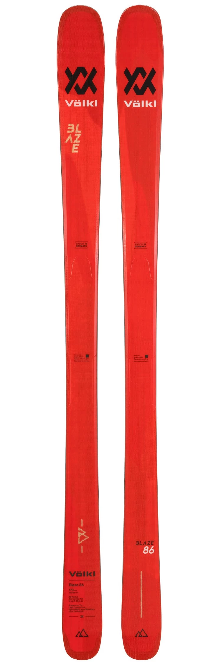 Le Volkl Blaze 86 propose un volume au patin de 86 mm pour un poids assez contenu de 1 430 grammes en taille 173 cm. Il offre donc un ratio poids/performance intéressant, qui en fait un ski dynamique dans la conduite et assez léger pour être monté en rando pour un skieur qui n’a pas peur de concéder quelques grammes en plus au profit d’une meilleure skiabilité. Son profil cambre + double rocker ainsi que son triple rayon de courbe le rendent très maniable dans une grande variété de terrains et de conditions. Le noyau bois multicouche hybride intégral offre de la réactivité et de la stabilité sans être trop physique, tandis que les matériaux élastiques aux spatules amortissent les vibrations. Agile sur les pistes comme les bords de pistes, capable de s’exprimer dans de la petite poudreuse, voilà un ski capable de vous suivre aussi bien lors de vos journées de ski alpin que lors de sorties randonnée. Parfait pour un skieur intermédiaire à confirmé qui veut un ski avec lequel il pourra varier les plaisirs.